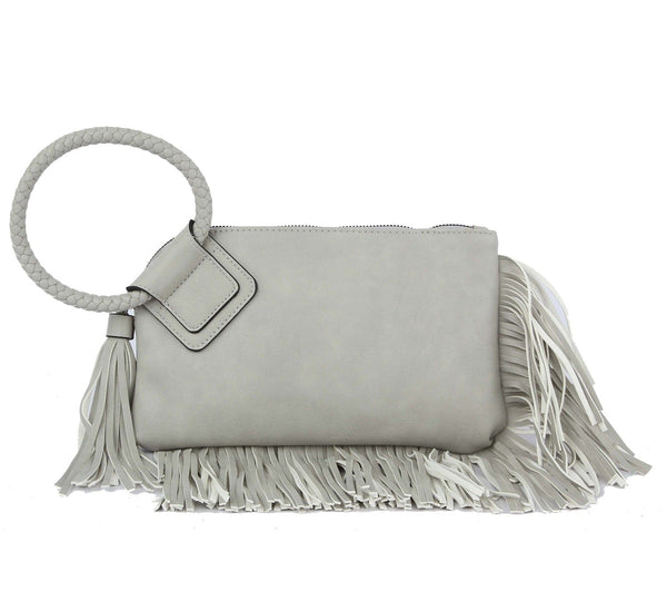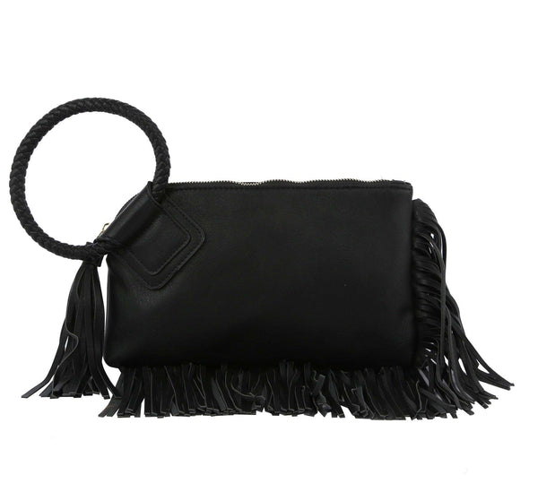 Fringe Soft Vegan Leather Wristlet/Clutch—the perfect accessory for when you want to add some serious drama to your look! This chic bag features fringe detailing, giving it a unique and eye-catching style that's sure to turn heads.